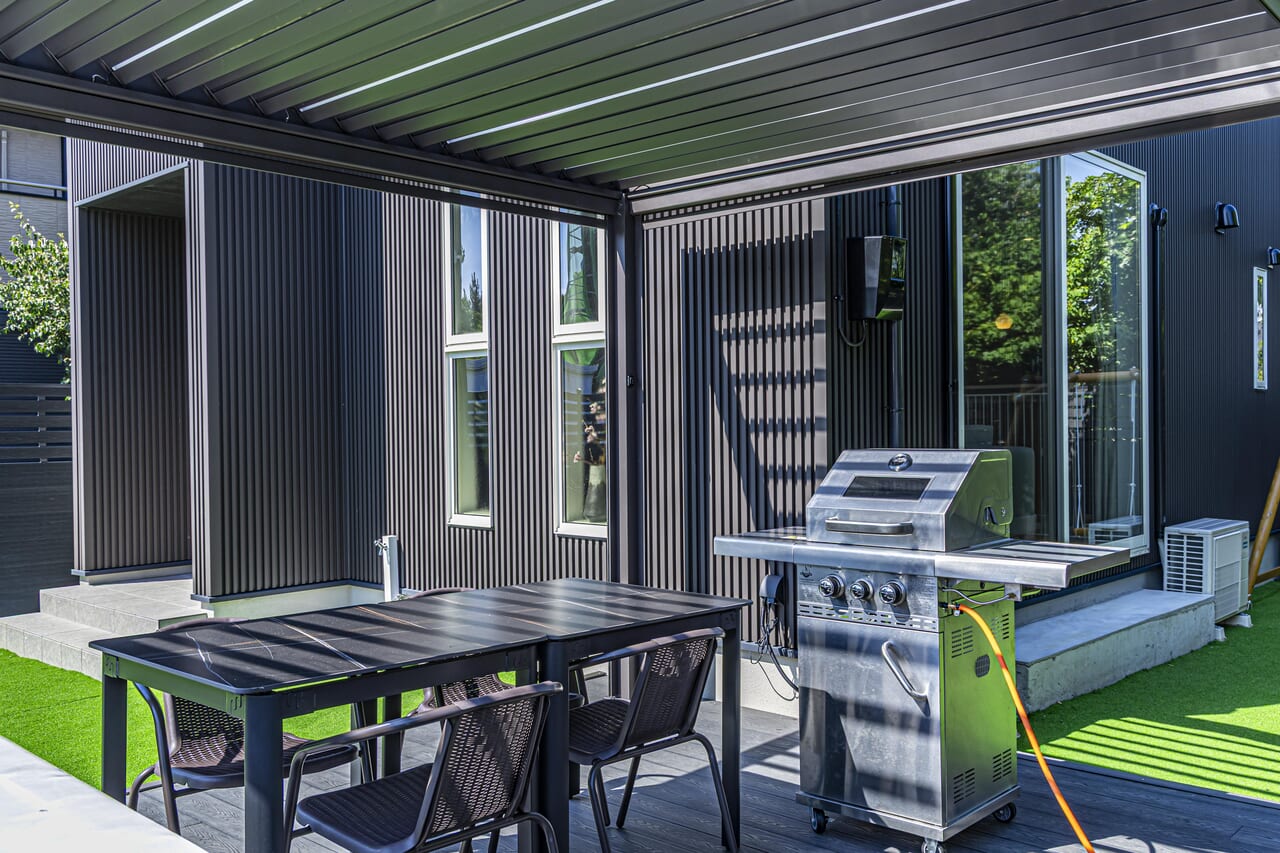 敷地内には、広々としたアウトドアリビング付きのプライベートガーデンを完備。